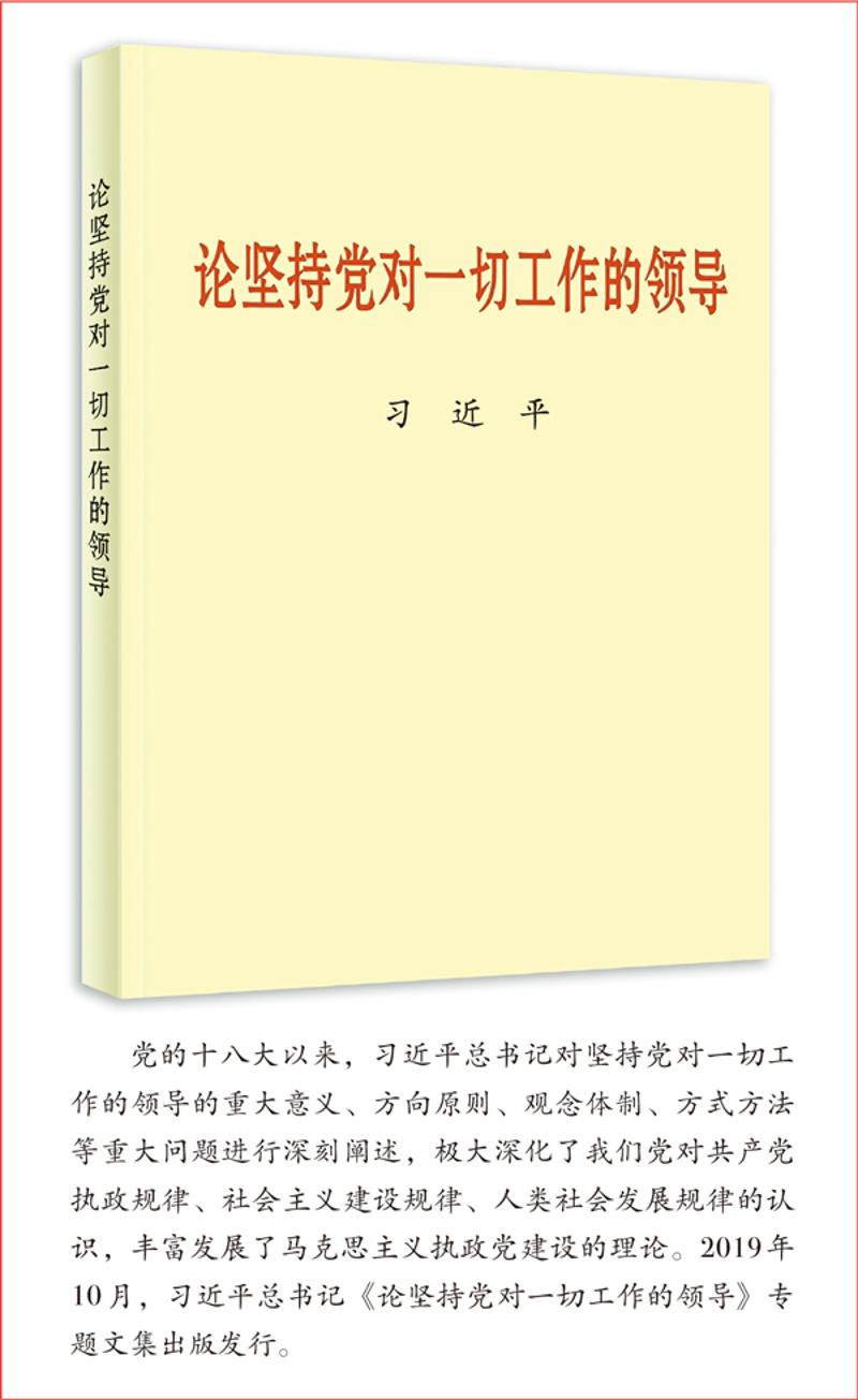 ——强调“中国特色社会主义最本质的特征是中国共产党领导,中国特色社会主义制度的最大优势是中国共产党领导,党是最高政治领导力量”;“党政军民学,东西南北中,党是领导一切的”;“在坚持党的领导这个决定党和国家前途命运的重大原则问题上,全党全国必须保持高度的思想自觉、政治自觉、行动自觉,丝毫不能动摇”等。