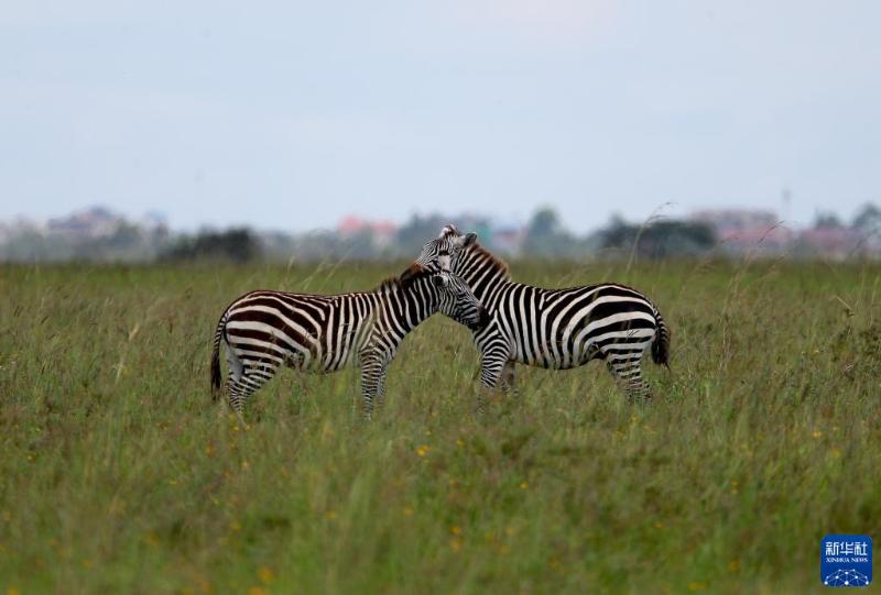 这是2021年5月19日在肯尼亚内罗毕国家公园内拍摄的斑马。新华社记者 龙雷 摄