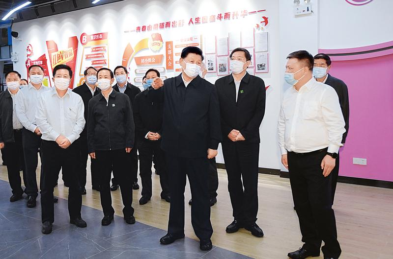 2020年9月16日至18日,中共中央总书记、国家主席、中央军委主席习近平在湖南考察。这是17日下午,习近平在马栏山视频文创产业园,考察园区开展企业党建和内容生产、技术研发、人才培养等。 新华社记者 李学仁/摄