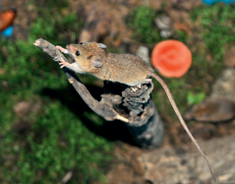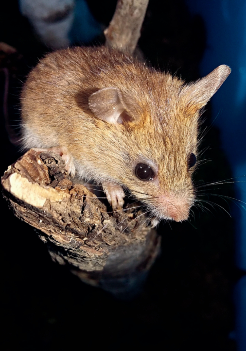 长尾蹶鼠的喂养几乎与喂养实验室中的白鼠一样简单,但在日常管理上有些不同。为了更贴近野外环境,研究人员必须给笼子里多添加一些土,为其提供丰富的树洞材料。我们发现,在饲养环境中,长尾蹶鼠的性情非常温顺。触摸它的背脊时,它一动不动,不像其他啮齿类动物那样很快逃离,也没有危险的攻击行为。