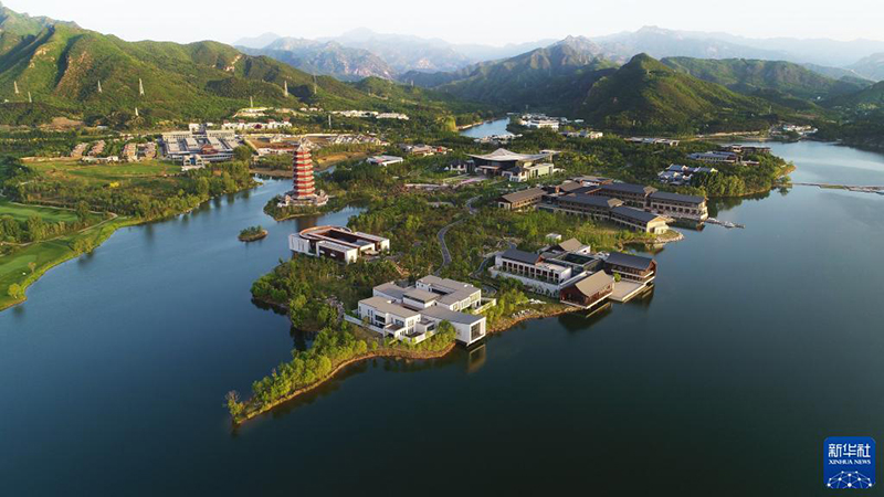 “一带一路”国际合作高峰论坛于2017年5月14日至15日在北京举行,怀柔雁栖湖国际会议中心是此次高峰论坛的主会场。这是雁栖湖(2017年5月6日摄,无人机照片)。新华社记者 李鑫 摄