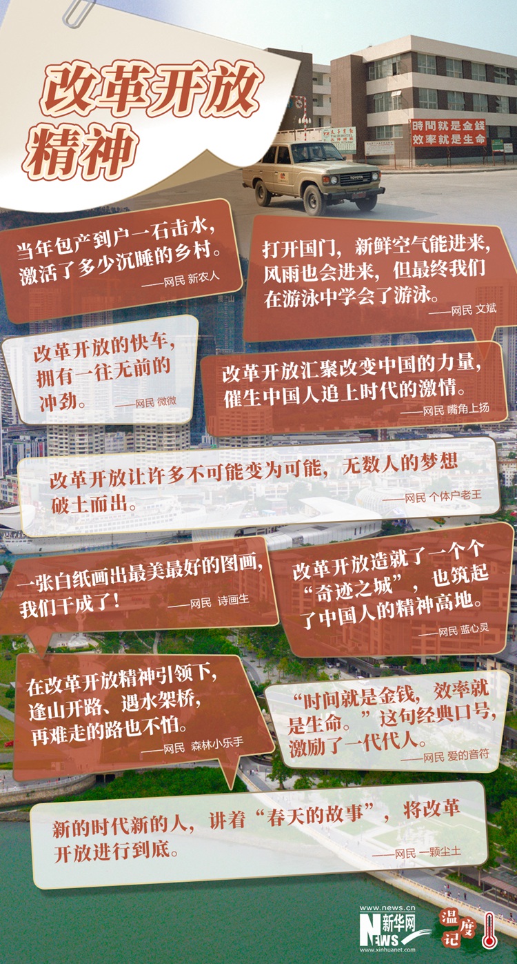 “在改革开放精神引领下,逢山开路、遇水架桥,再难走的路也不怕。”社交平台上,网民们点赞过往成就,对推动新时代更高水平的改革开放充满信心。发扬伟大精神,沿着改革开放这条创造历史的道路不断奋进,锲而不舍、一以贯之、再接再厉,我们必将开拓当代中国和中国人民新的更加宏阔的天地。(文字:马若虎 海报设计:王晔)
