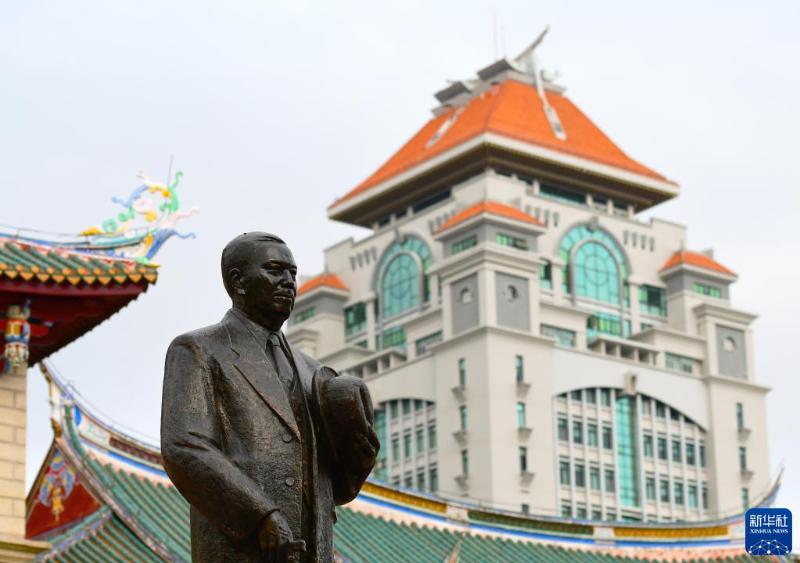 这是厦门大学里的陈嘉庚雕像(4月1日摄)。新华社记者 魏培全 摄