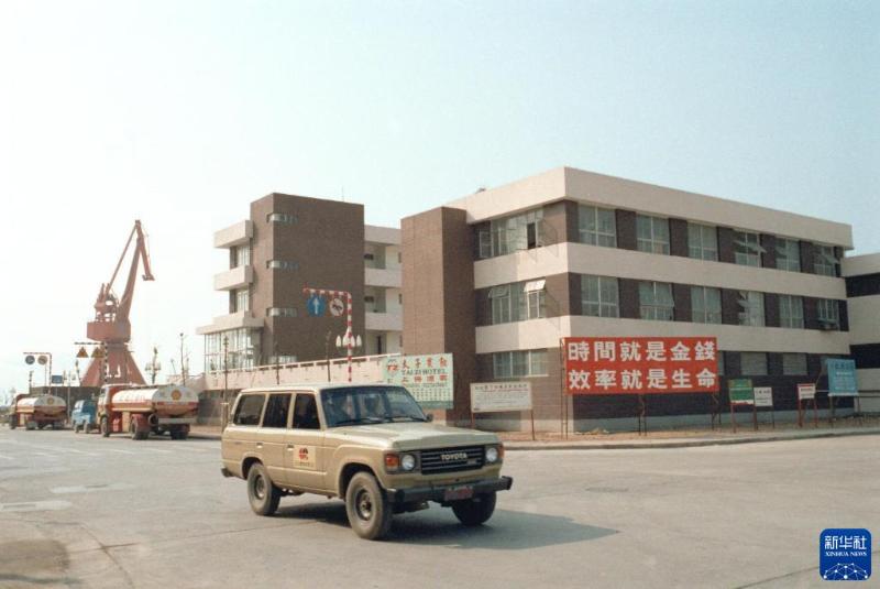 深圳市蛇口工业区办公大厦旁挂着“时间就是金钱,效率就是生命”标语牌(资料照片)。新华社记者 徐佑珠 摄
