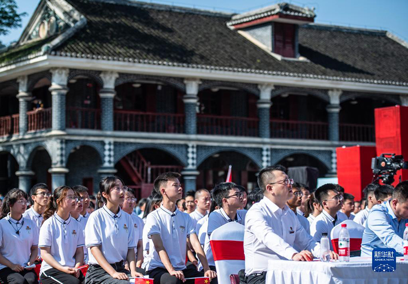 贵州医科大学师生代表在遵义会议纪念馆广场参加“四地同上一堂党史课”活动(2021年5月14日摄)。新华社记者 陶亮 摄