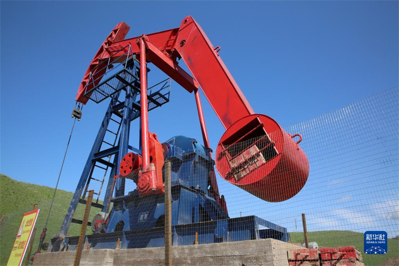 2015年4月17日,吉尔吉斯大陆油气公司的抽油机正在在吉尔吉斯斯坦贾拉拉巴德附近的现场采油。吉尔吉斯油气项目位于吉尔吉斯斯坦贾拉拉巴德州费尔干纳盆地,由成立于2013年5月的吉尔吉斯大陆油气有限公司负责勘探研究、开发开采及老井技术改造增产。该公司控股股东为中国熔盛重工(又称华荣能源)集团,公司与吉尔吉斯石油天然气股份有限公司签订合作协议,中方出资金、技术、人员,吉方以石油区块的勘探、开发权作为投入,开发出的石油双方按比例分成。新华社发 (罗曼摄)