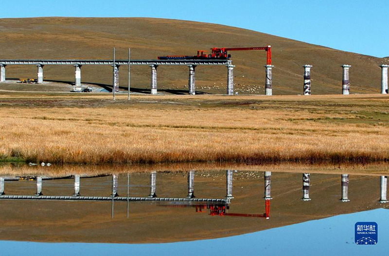 青藏铁路在架桥施工中(2004年资料照片)。新华社记者 觉果 摄