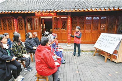 11月29日,浙江省长兴县夹浦镇红色教育基地,宣讲员正在为基层党员、群众等宣讲党的十九届六中全会精神。 谭云俸摄(人民视觉)