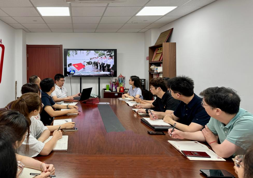 会上,大家集中观看央视新闻“赓续前行 共谱华章——庆祝中国共产党成立103周年”七一特别直播节目,党支部书记徐鹏带领党员同志重温入党誓词,并为上半年过政治生日的党员同志送上贺卡。