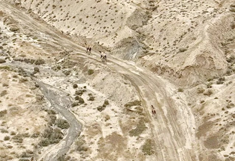 据记者介绍,此次共拍摄到5峰野骆驼,这些野骆驼体型魁梧,善于奔跑,行动灵敏,性格机警,长有标志性的双驼峰,体色主要呈浅黄棕色,与沙土环境融为一体,极具隐蔽性。记者通过无人机视角,捕捉到了它们奔跑、活动的珍贵画面。