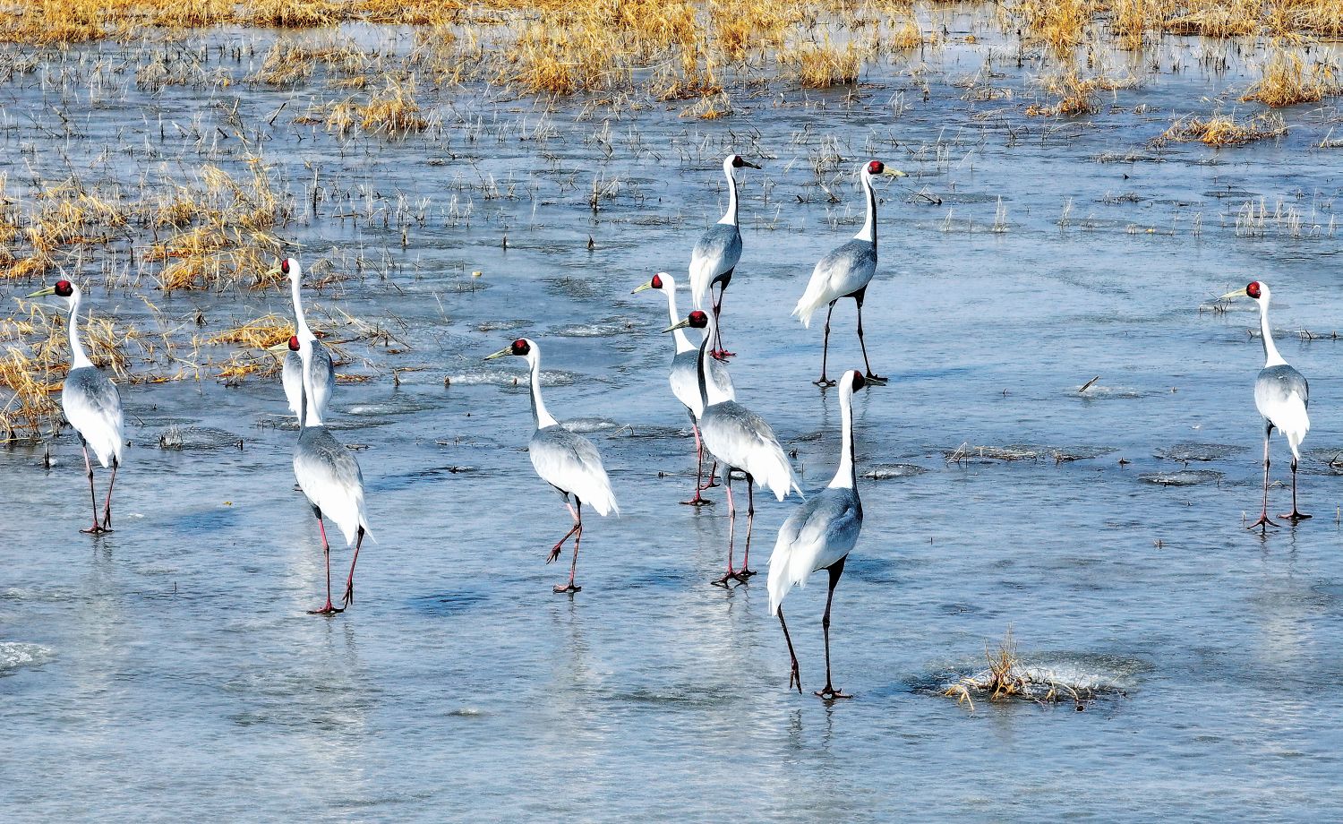 目前,到波罗湖停歇的候鸟中,有国家一级保护动物白头鹤1000多只、白枕鹤1200余只、东方白鹳26只、丹顶鹤4只;国家二级保护动物白额雁1万余只。豆雁、绿头鸭、赤膀鸭、赤麻鸭、花脸鸭、普通秋沙鸭10万多只。接下来,保护区将迎来候鸟迁徙高峰期,为此波罗湖保护区将持续加大巡护执法力度,为候鸟提供良好的栖息环境。(赵冷冰)