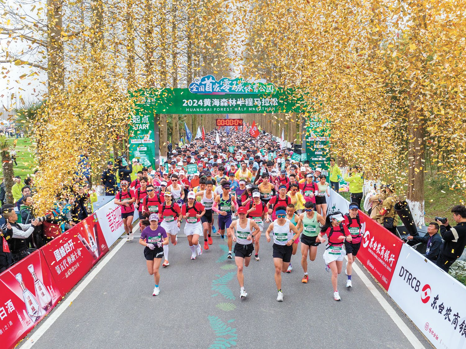 3月31日8点30分,2024黄海森林半程马拉松鸣枪开跑。4000多名参赛选手在全国首家零碳体育公园的最美森林赛道上开启了一场“零碳之旅”。