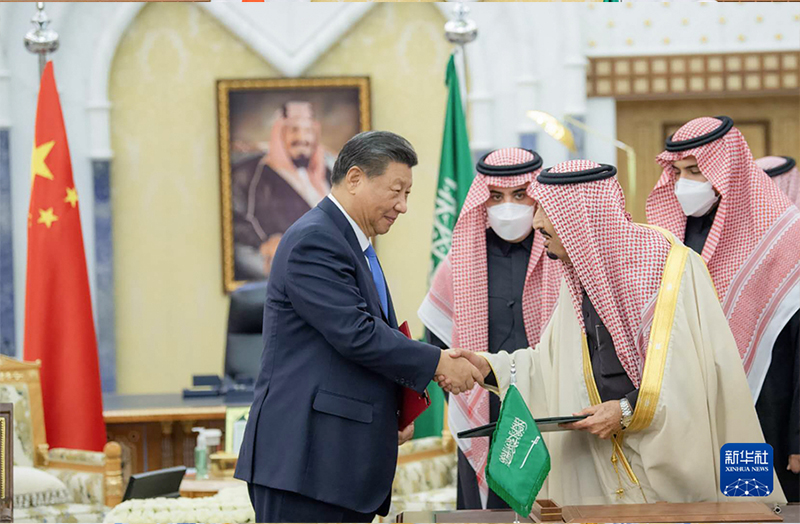 当地时间12月8日下午,国家主席习近平在利雅得王宫会见沙特国王萨勒曼。这是两国元首亲自签署《中华人民共和国和沙特阿拉伯王国全面战略伙伴关系协议》,同意每两年在两国轮流举行一次元首会晤。新华社发