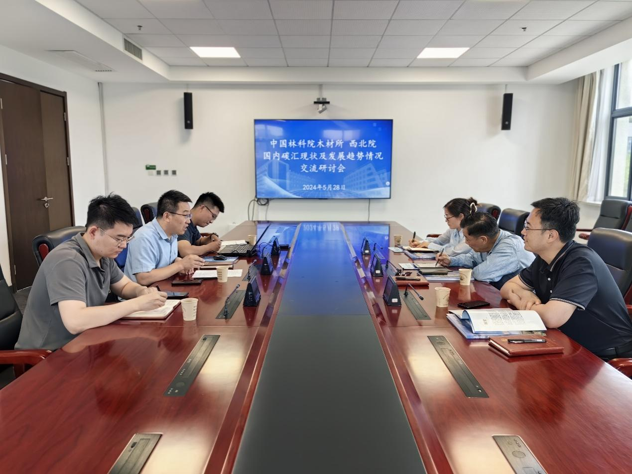 双方就业务合作、当前碳汇交易总体的形势,以及后续工作思路进行了广泛而深入交流。邓侃表示,西北院在森林资源监测、科技创新、林草碳汇等方面具有突出技术优势和高水平的人才队伍,在林草碳汇领域也取得了优异的成绩,并分享了中国林科院木材工业研究所近年来在碳排放、碳储存、碳足迹、碳减排、碳中和方面的多项成果和成功经验。