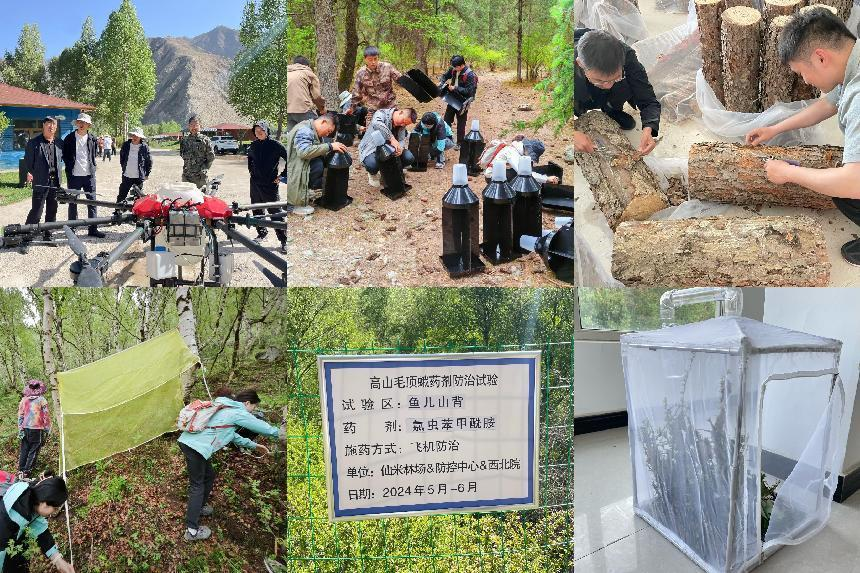 此次工作基于2023年昆虫野外调查成果基础上,重点从三个方面开展工作。一是开展林间昆虫多样性本底资源调查,摸清重大林业害虫发生现状及未来发展趋势;二是开展高山毛顶蛾药剂防治试验和小蠹虫类信息素监测及诱杀工作,力争建立高山毛顶蛾及小蠹虫类综合防治示范区;三是结合室内饲养观察,系统调查天敌多样性,分析优势种天敌的控制作用。