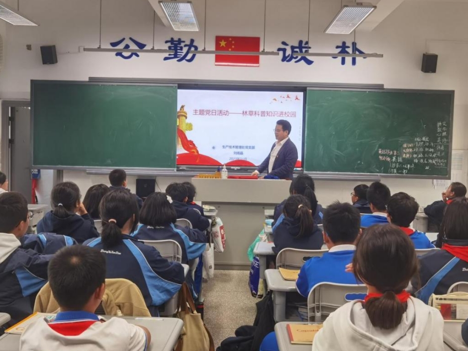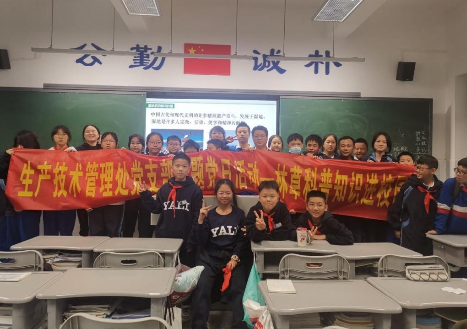 习近平总书记强调:“新时代生态文明建设要从娃娃抓起,通过生动活泼的劳动体验课程,让孩子亲自动手、亲身体验、自我感悟,让‘绿水青山就是金山银山’的理念早早植入孩子的心灵。”为深入贯彻习近平生态文明思想,落实习近平总书记关于“新时代生态文明建设要从娃娃抓起”的重要论述精神,推动“绿水青山就是金山银山”理念深入校园。11月21日,我院生产技术管理处党支部创新主题党日活动形式,赴长沙市中雅培粹双语中学开展了一场“林草科普知识进校园”主题党日活动。