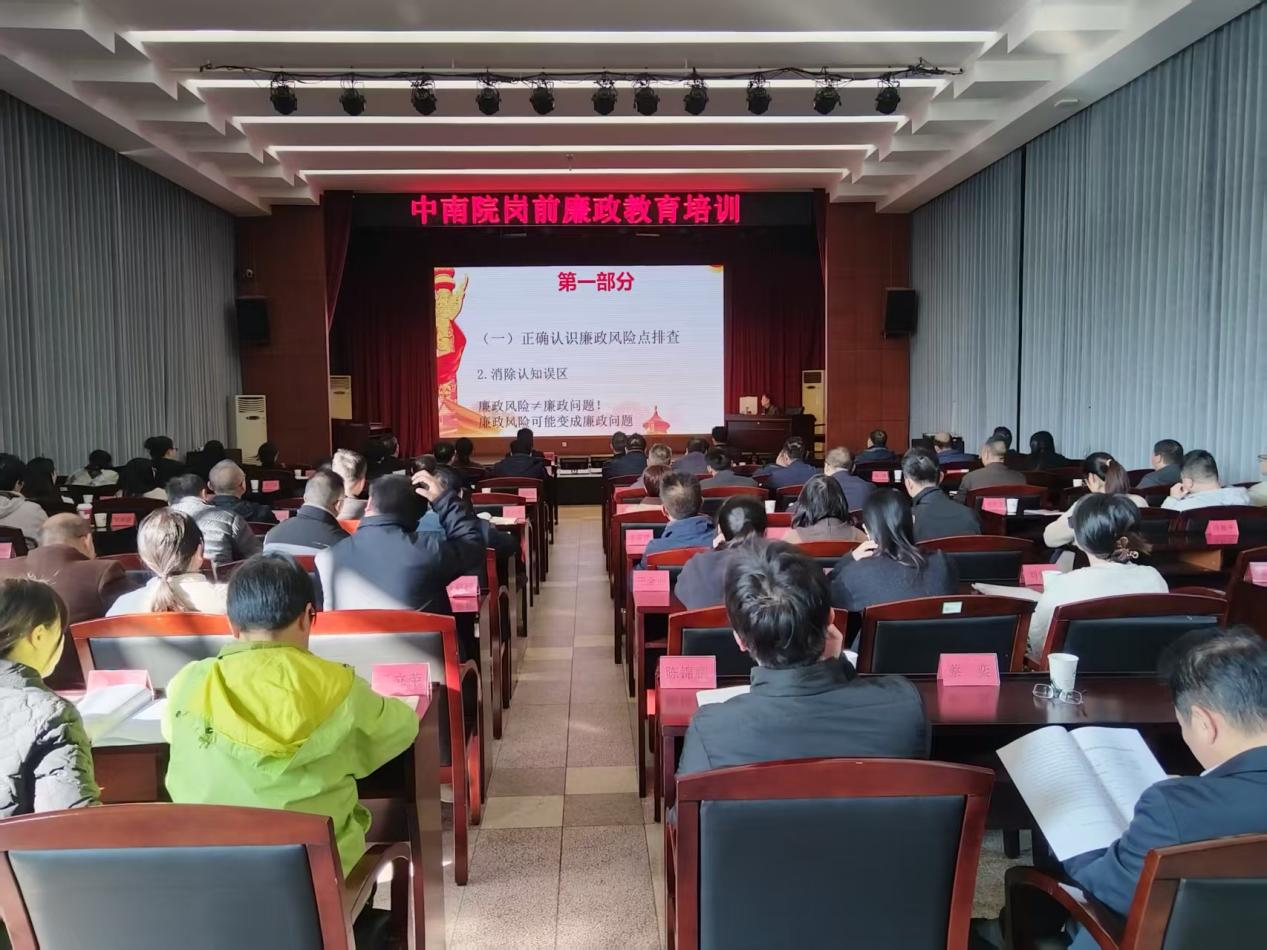 为进一步强化党风廉政建设,巩固深入贯彻中央八项规定精神学习教育成果,11月21日,中南院组织召开岗前廉政教育培训会议,教育引导全院党员干部职工增强廉洁自律意识,筑牢拒腐防变思想防线,扎实推进不敢腐、不能腐、不想腐一体贯通、走深走实。全院在编在岗党员干部职工共计81人参加培训。