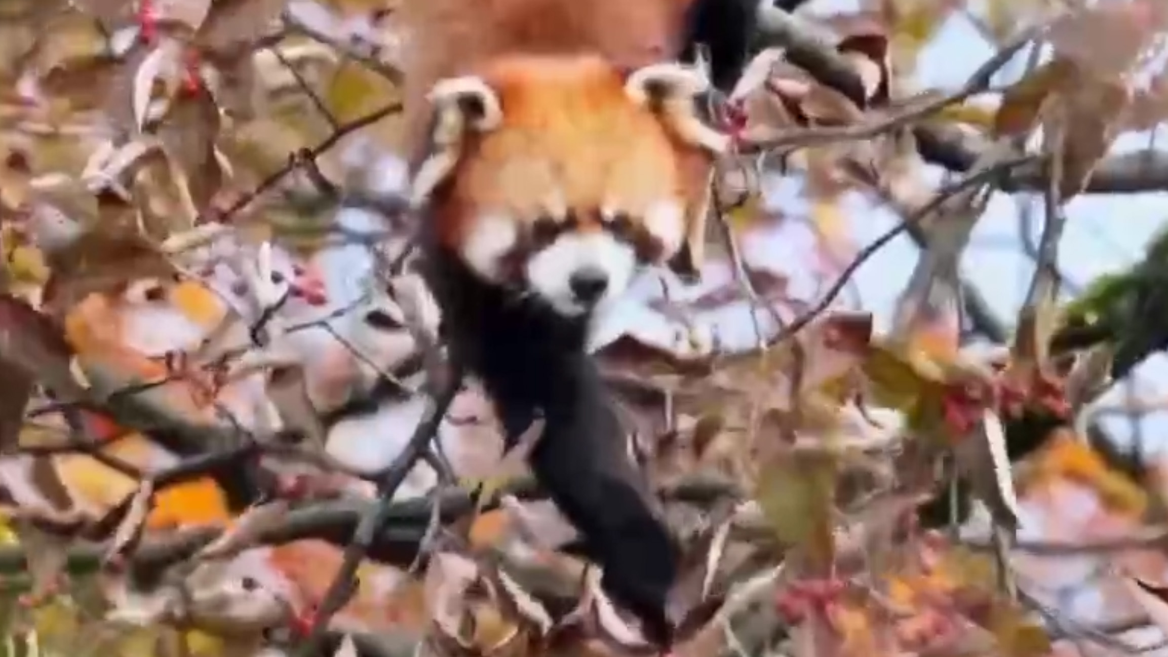 四川眉山:野生小熊猫山间采野果 呆萌可爱