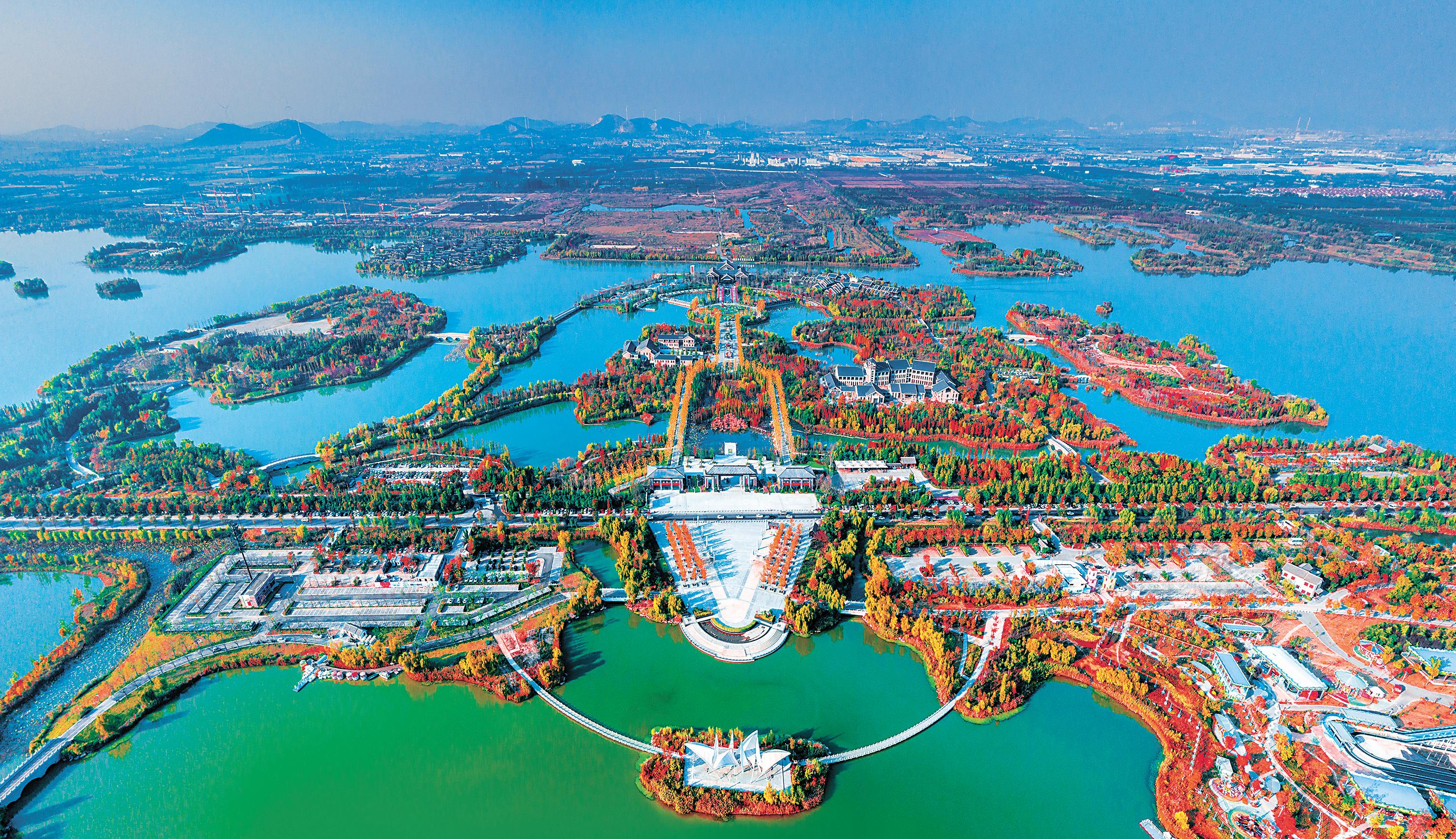鸟瞰潘安湖湿地公园。沈素贞供图