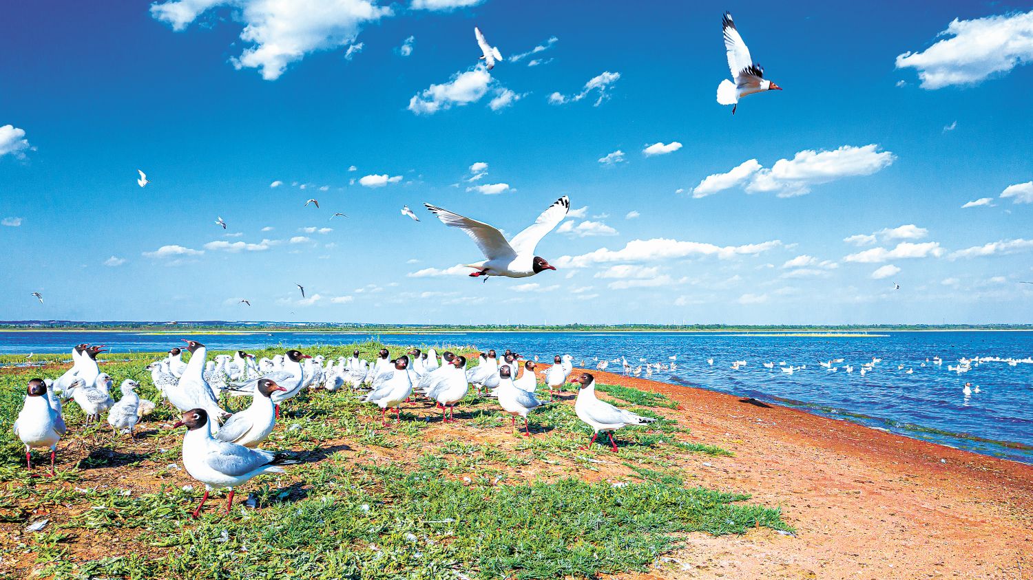 图为位于毛乌素沙地的红碱淖国家级自然保护区内的成群遗鸥。 (韩莹)
