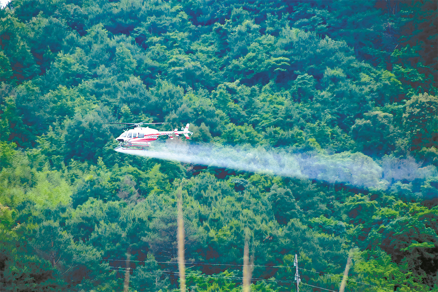 飞机喷药防治松材线虫病传播媒介作业。 杨志摄