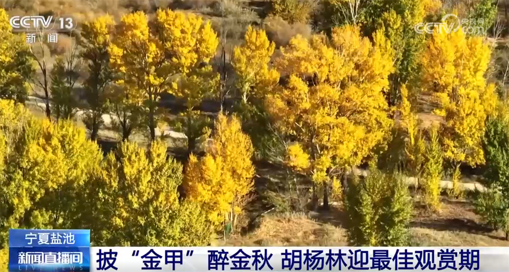 宁夏盐池:披“金甲”醉金秋 胡杨林迎最佳观赏期