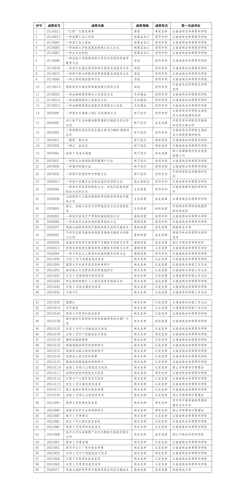 云南省2025年度69项林草科技成果被国家林草科技推广成果库收录入库