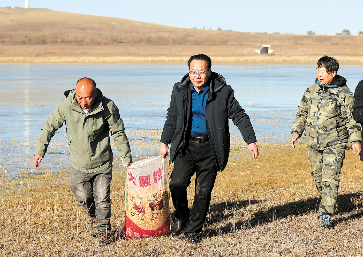 老郝义务保护天鹅的行为,让我非常感动。这些年,我也尽力想了一些办法,和他一起去保护在这里停歇的天鹅,许多爱心人士也伸出援助之手。这些年,河北省邢台的一家公益协会,一直在出资出力默默保护。前年,张家口市林业局及当地主管部门也介入其中,参与了保护。今年又得到秦皇岛马女士的资助,为天鹅购买了玉米,以确保天鹅在停歇途中,充分补充能量。