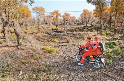 暑往寒来,一片片野生胡杨傲立大漠,染满金黄。“近年来,我们采取引洪灌溉、生态防治、平茬复壮等综合保护举措。胡杨林坚守大漠,我们就为胡杨林撑起保护伞。”强利民说。(记者 吴雪聪)