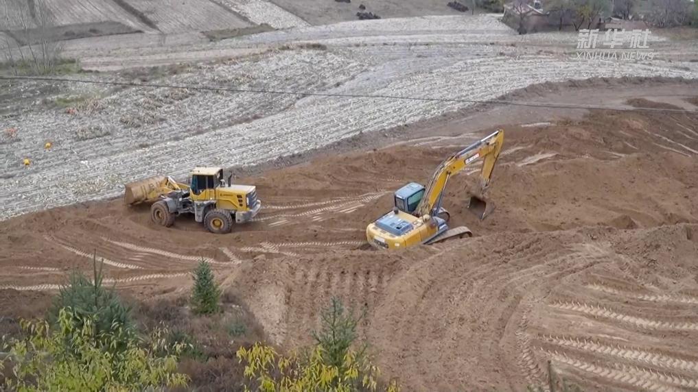 初冬时节,在甘肃省定西市安定区、陇西县等多地高标准农田建设现场,挖掘机、推土机、平地机等机械设备轮番上阵、穿梭作业,正在将零散旱塬逐步变身为“田成方、水相连、路相通”的高产良田。