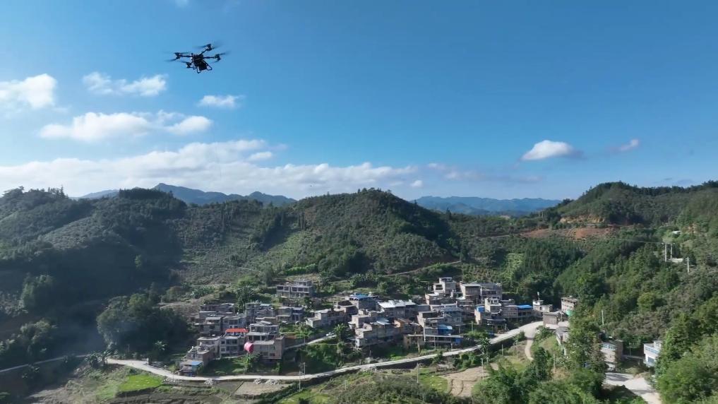 当地首次引进无人机,将采收的油茶果快速运至山下收集点,为产业提质增效注入科技动能。