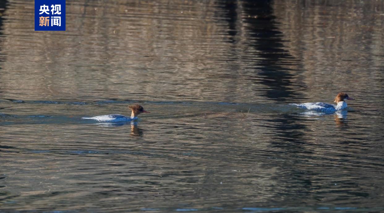 国家一级保护动物、全球仅数千只的中华秋沙鸭作为“领衔主角”,成群的大天鹅与疣鼻天鹅优雅舞动翅膀,在水面翩然游弋。它们喜欢在水面开阔、食物丰富、人为干扰少的湿地停歇,这片水域成为它们迁徙路上重要的“中转加油站”。