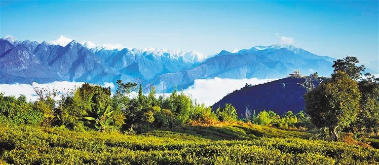 墨脱县背崩乡格林村的缥缈茶园,雪山、云雾与茶树相映成景(摄于2023年2月)。 黄家斌摄(中经视觉)