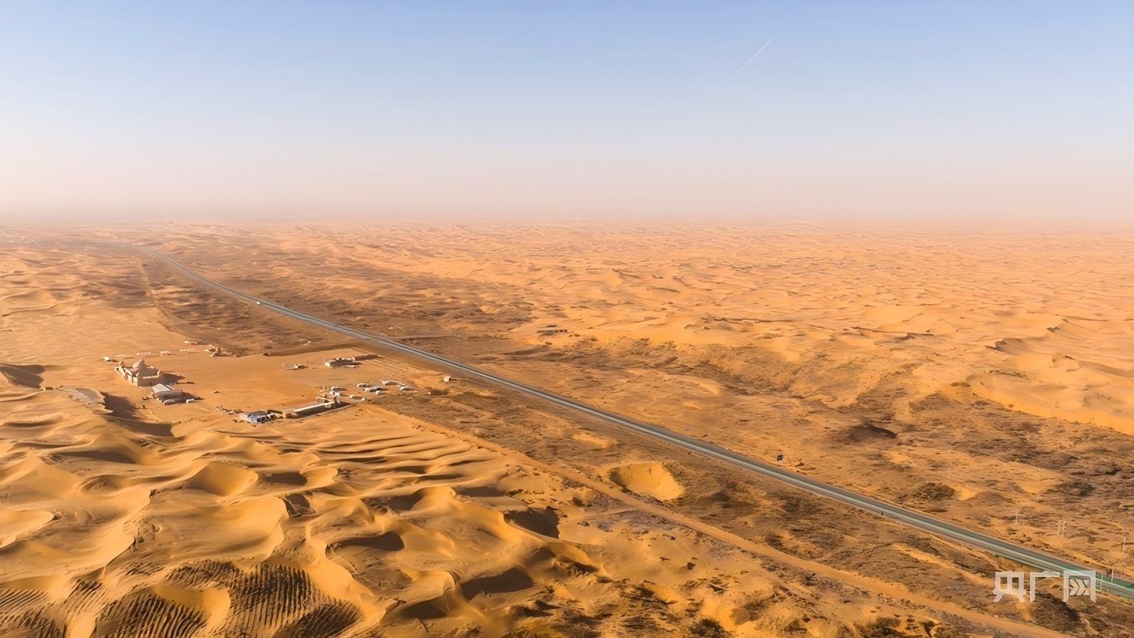 位于鄂尔多斯杭锦旗境内的穿沙公路(央广网记者 杨亚东 摄)
