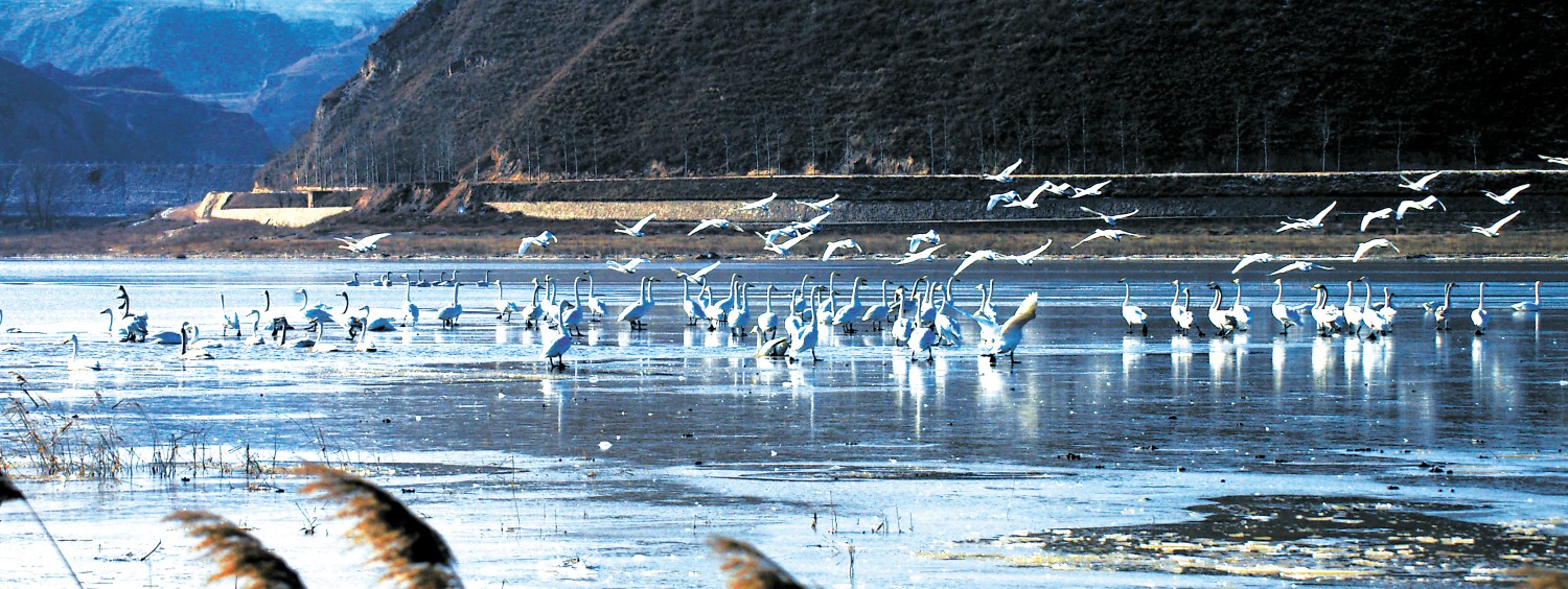 天鹅湖国家城市湿地公园的木栈道上,游客们或拍照打卡,或直播讲解,或手持望远镜凝神观赏。湖面上,成群大天鹅翩然游弋,与络绎不绝的游客共同勾勒出一幅人与自然和谐共生的动人画卷。江苏某旅行社司机安师傅笑着说:“我们是从南京来的,入冬后,这已是我第13次开大巴带游客来三门峡看天鹅。”