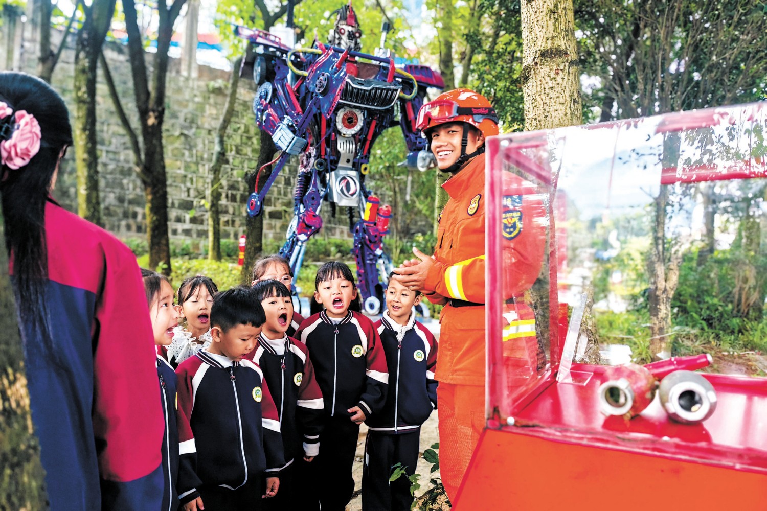 消防员为师生讲解森林防火常识 郭元丰摄