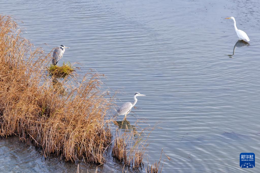 10月14日在黑龙江省同江市三江口国家湿地公园拍摄苍鹭和白鹭。新华社发(刘万平摄)