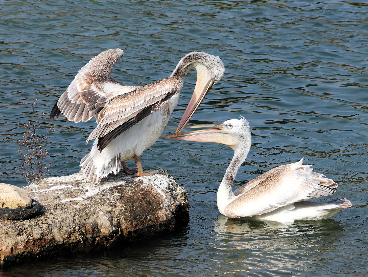 近日,河南省灵宝市金水湖迎来两只国家一级保护野生动物卷羽鹈鹕。它们体态优雅,时而在湖面自在游弋、协作捕鱼,时而在芦苇丛边安静休憩,为城市中心镶嵌了一抹灵动而和谐的自然色彩。
