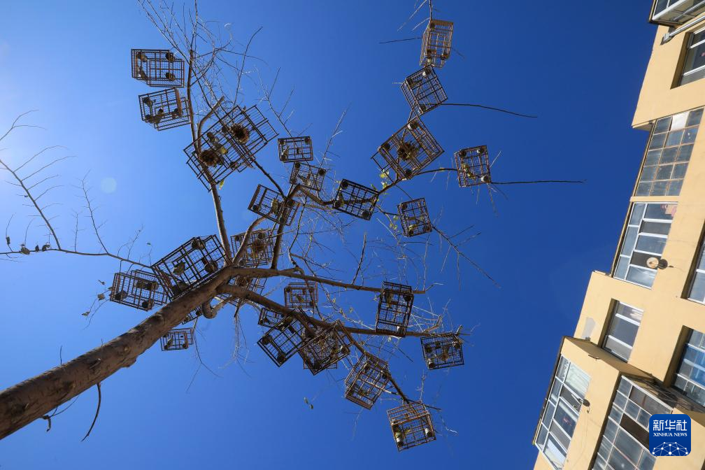 哈尔滨野保志愿者团队志愿者放飞被捕鸟笼捕获的鸟类(2023年11月4日摄)。