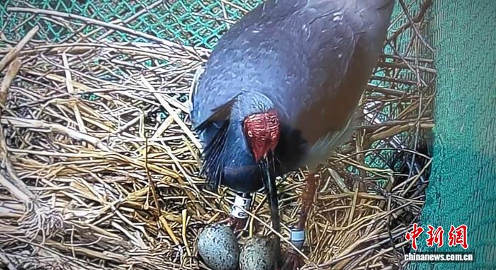 朱鹮已在横山安家落户。横山朱鹮人工繁育和野化放飞试验基地供图