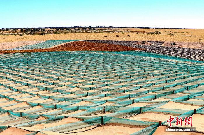 图为民勤县新型防沙材料的突破与应用,给荒漠地区带来新希望。(资料图)马爱彬 摄