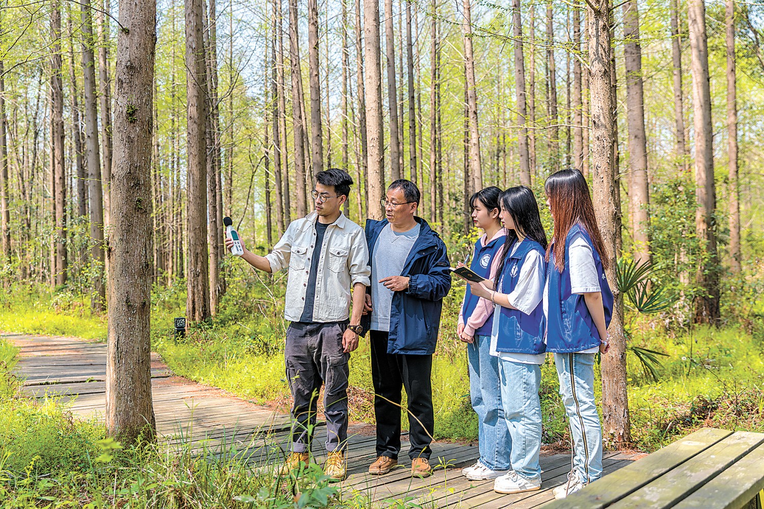 “这里的教室没有四面墙,你们的任务是整片森林。”领队邹卫红老师的话音刚落,学生们便分组领取记录笔、康养牌等工具,深入森林花海展开探索。