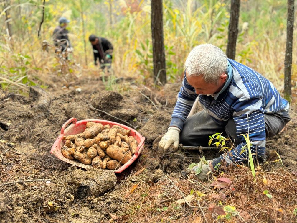重庆市城口县周溪乡村民正在采挖天麻。新华社记者赵佳乐 摄