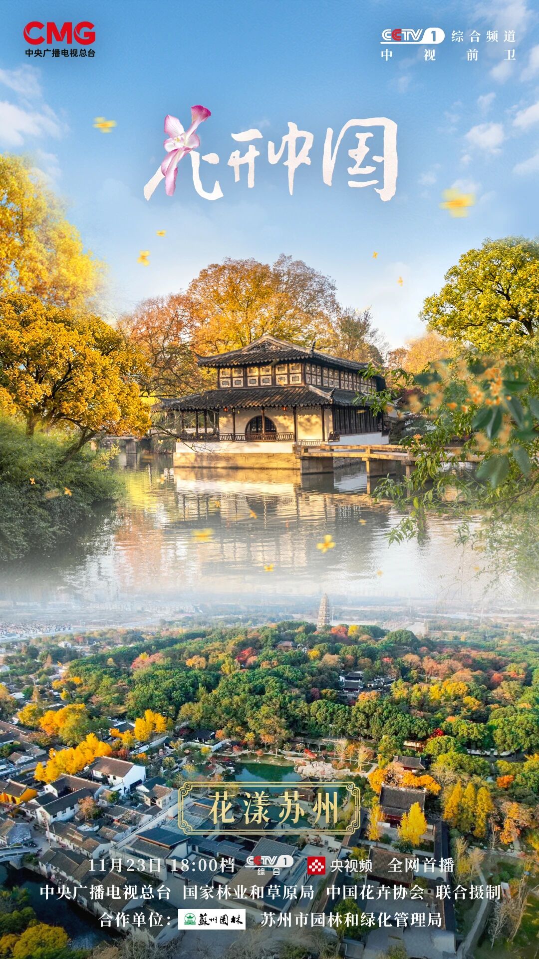 由中央广播电视总台联合国家林业和草原局、中国花卉协会共同打造的大型花卉文化融媒体节目《花开中国》最新一期于11月23日在央视综合频道播出,带领观众走进苏州这座“园林之城”,探寻桂花的千年风雅。