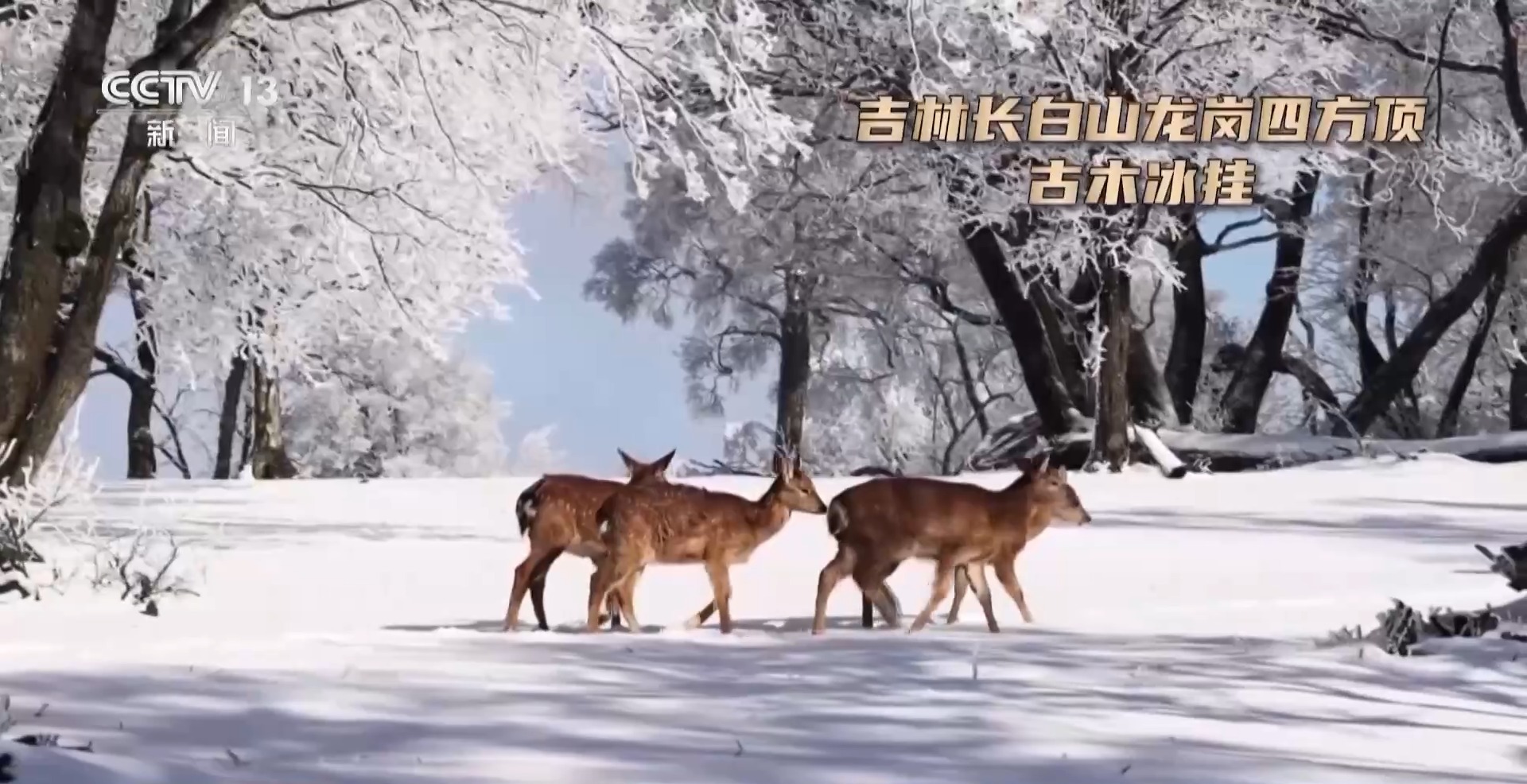 卫星视角下的云台之巅,冰封世界与穿梭其间的梅花鹿群,共同构成了动静相宜的生态画卷。