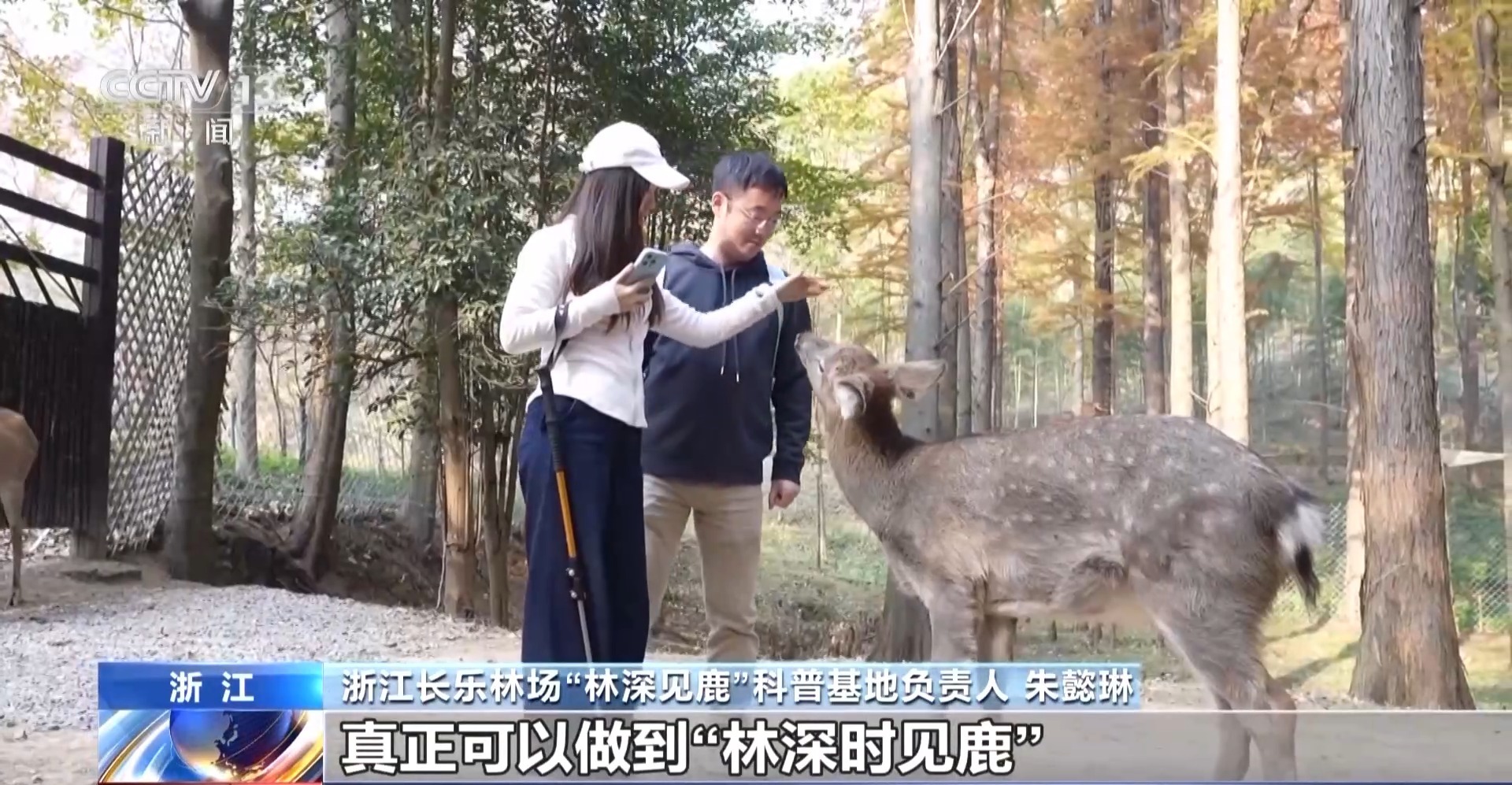 浙江长乐林场“林深见鹿”科普基地负责人朱懿琳:长乐森林公园的森林地貌天然适合小鹿生活和居住,真正可以做到“林深时见鹿”。