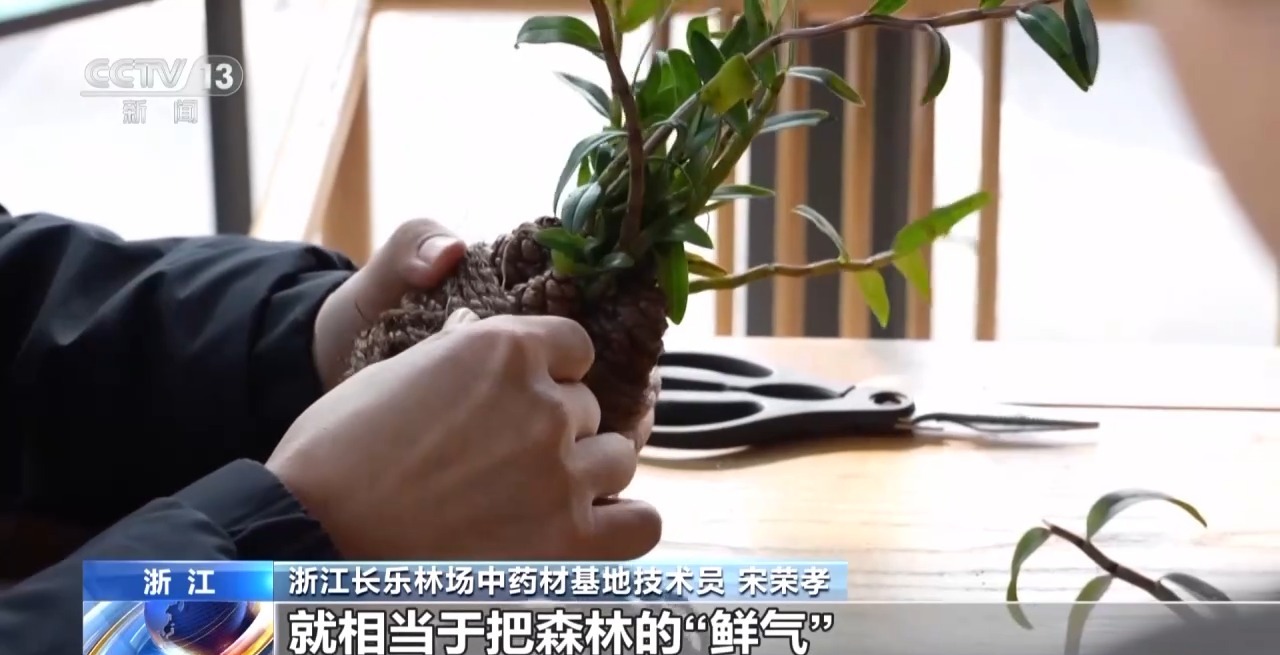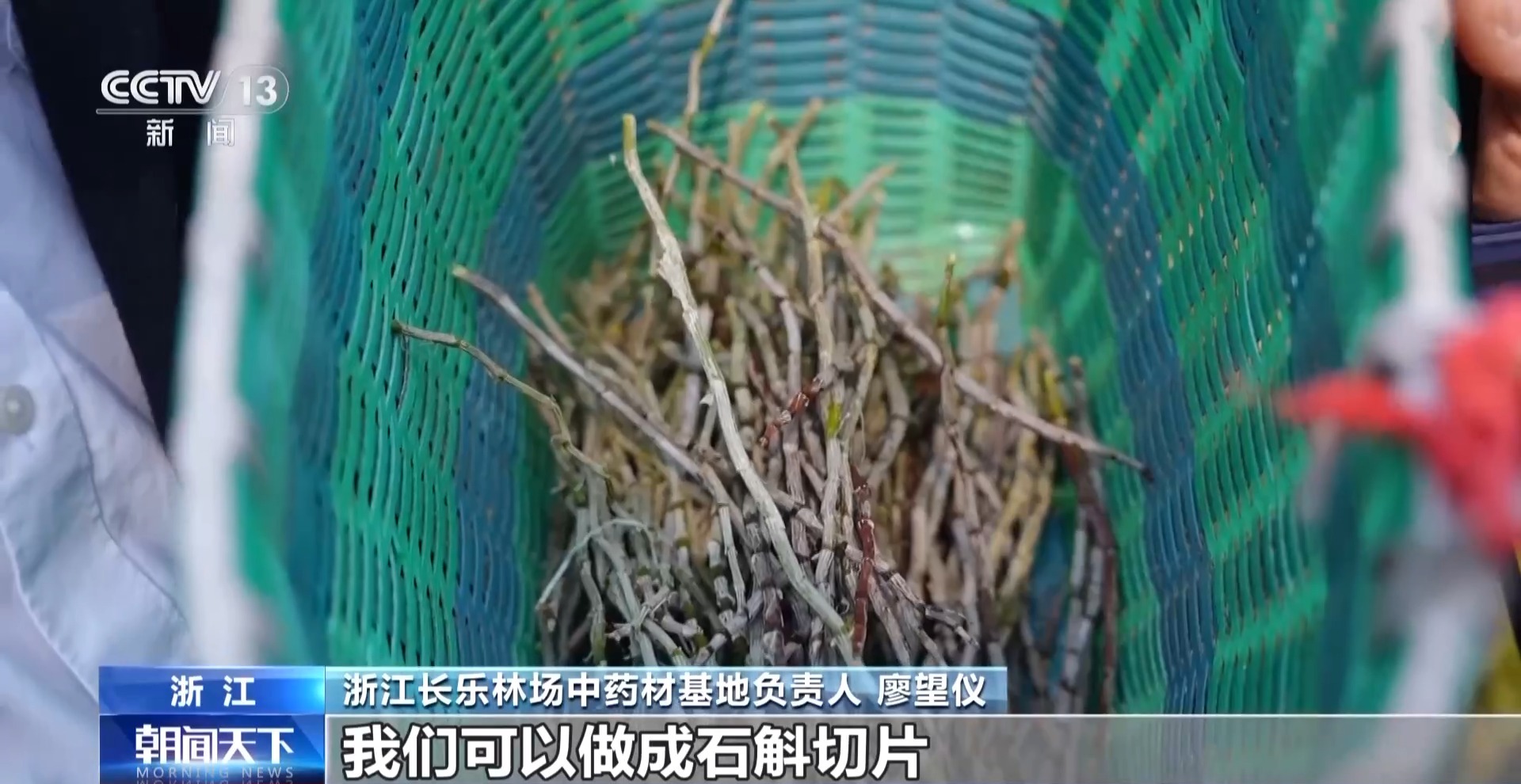 浙江长乐林场中药材基地负责人廖望仪:新鲜的石斛采收下来,我们可以做成石斛切片、石斛条、石斛粉。不砍一棵树,又能产生万元以上的经济价值。林下是一个聚宝盆,有树的价值,有生态的价值,中药材的价值。