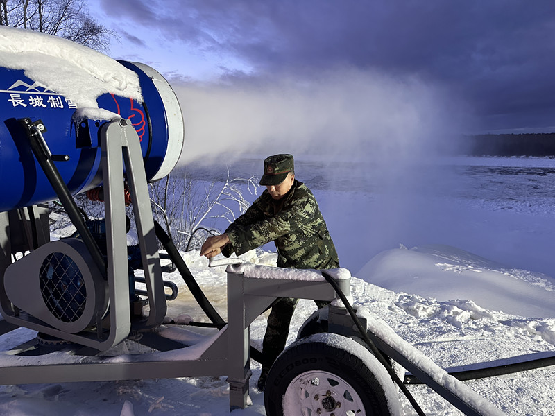 依托黑龙江湾得天独厚的冰雪资源,景区在湾下区域投入大型造雪设备,进行人工造雪,准备打造冰雪滑梯。滑道最高落差达10余米,采用分层设计,兼顾亲子家庭与年轻游客的刺激需求。滑梯主体全由造雪堆积而成,表面经特殊打磨处理,确保滑行顺畅且安全。此外,还将陆续推出雪地摩托驾驶、冰上陀螺等传统与现代结合的体验项目,满足全年龄段游客需求。