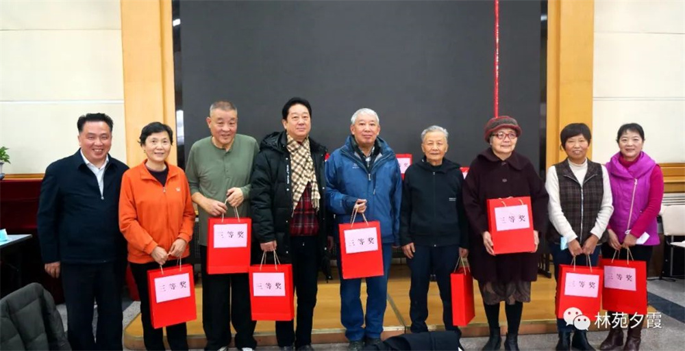 离退休干部局班子成员分别为获得一、二、三等奖老同志颁发奖品。