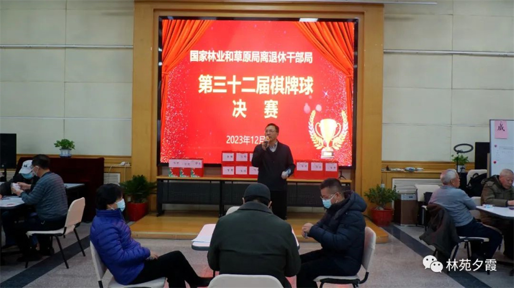 12月8日,国家林业和草原局离退休干部第32届棋牌球决赛在老干部活动中心举行,70多名老同志到场参加决赛,离退休干部局班子成员到场观赛,郑飞同志致开幕辞。